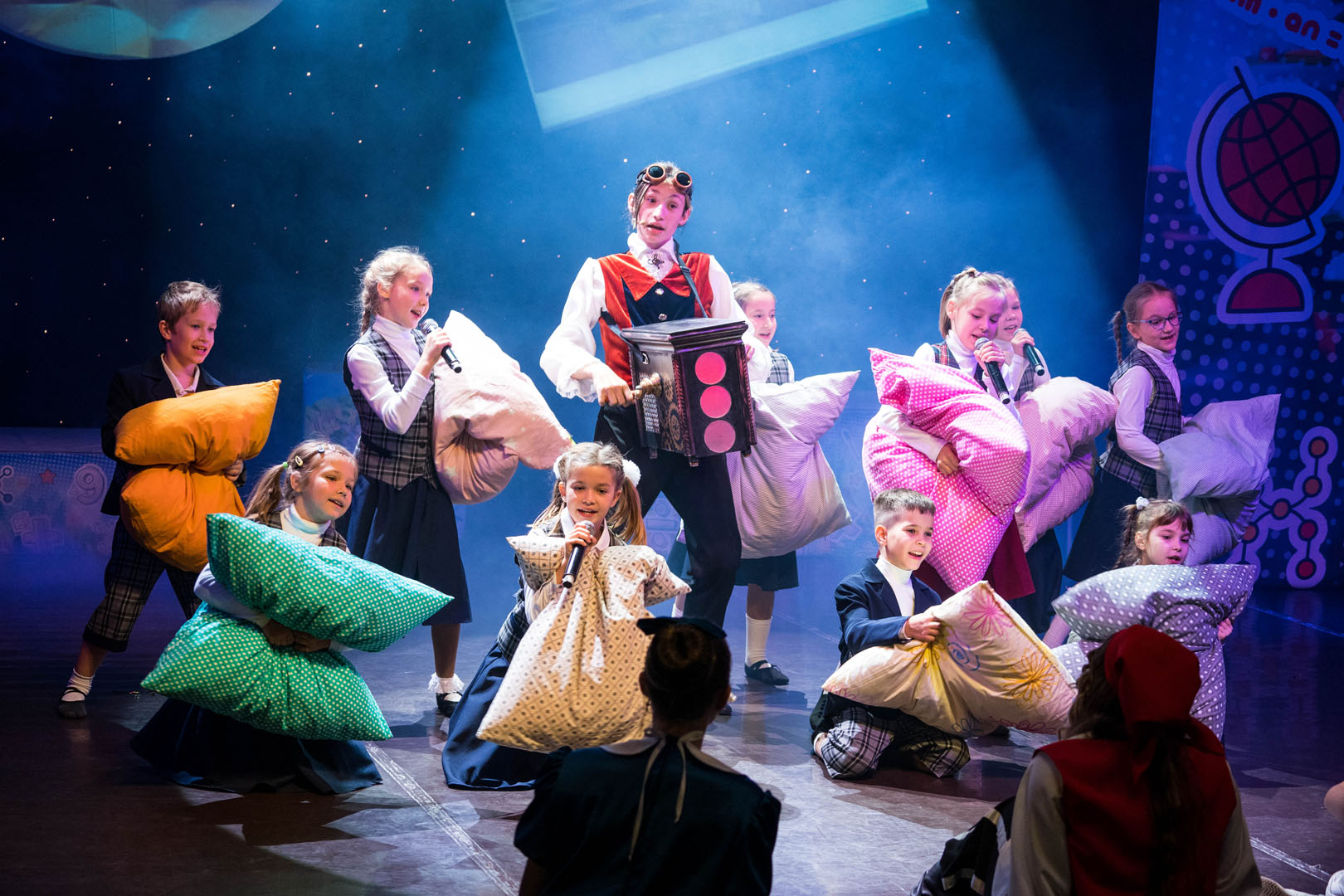 Репертуар Московского детского театра эстрады разнообразен, и каждый сезон он пополняется новыми интересными постановками. Есть спектакли, в которых на сцену выходят только дети (к примеру, в сказке-фантазии «Денискины рассказы» или мюзикле «Веселые уроки» вы не увидите ни одного взрослого актера), а есть те, где к юным артистам присоединяются их более опытные коллеги («Волшебник Изумрудного города», «Волшебная лампа Аладдина», «Синяя птица» и т.д.). Неизменным во всех спектаклях остается одно – высочайшее качество постановок в сочетании с талантом артистов любого возраста. Именно поэтому на наших спектаклях всегда аншлаги, а в зале неизменно звучит детский смех и аплодисменты.