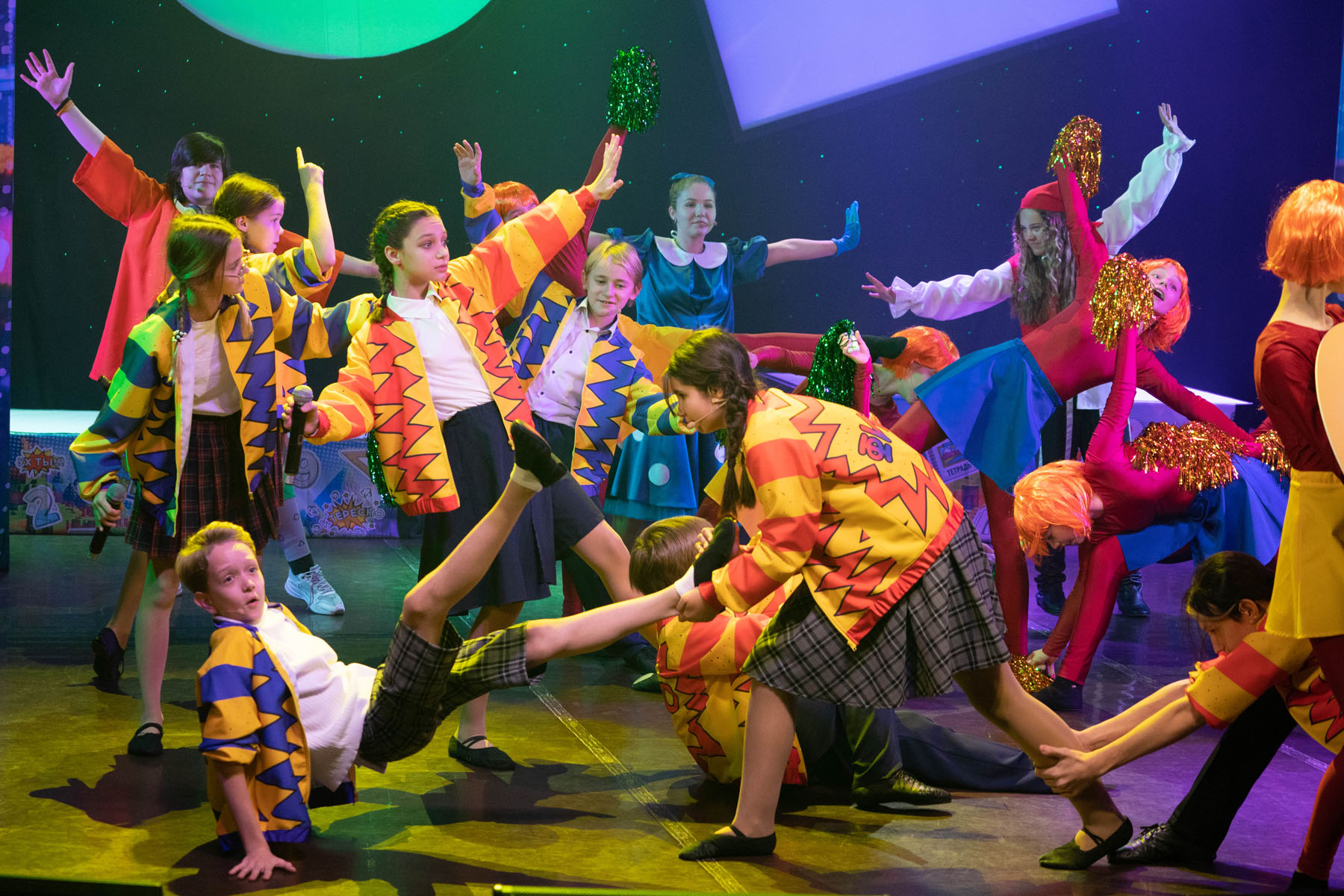 В спектакле задействованы дети от малышей до достаточно взрослых и каждый, абсолютно каждый знал что где и когда ему делать! Какой это труд!! Замечательные вокалисты, какие эмоции у малышей, а какая хореография!! Впечатляюще! Несмотря на то, что сам спектакль без антракта и длится около часа, событий там предостаточно, чтобы в него полностью погрузиться и даже поностальгировать по школе..